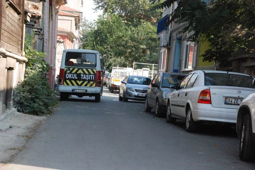 Kaleiçi semtinde okul servisi olarak kullanılan minibüsün yolun ortasına park etmesi insanları çileden çıkardı.
