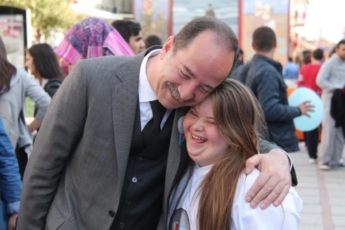 Otizmli Mehmet Kaynarca ve Şebnem Kuzu ile birlikte sahneye çıkan Başkan Gürkan, 'Engelli Yaşam Merkezi'nin çok yakında hizmete gireceğini söyledi.