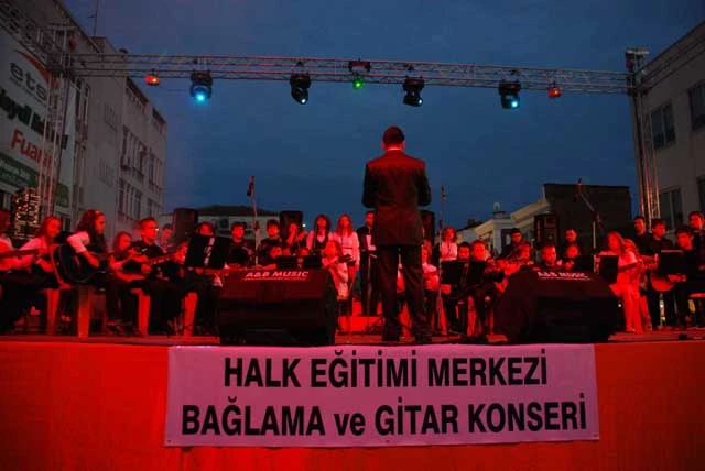 Halk Eğitim Merkezi kursiyerleri, Edirnelileri coşturdu. Edirne Halk eğitim Merkezi gitar ve bağlama kurslarında eğitim alan toplam 120 öğrenci, 8 ay boyunca öğrendiklerini halk konserinde sergiledi. Konser öncesinde kısa bir konuşma yapan Edirne Halk Eğitim Merkezi ve ASO. Müdürü İsmail Erkaraman, 5 yıl önce bu kursları açtıklarında 10 öğrencileri olduğunu ancak son dönemde 60 bağlama 60 gitar olmak üzere toplam 120 kursiyerle büyük bir aile olduklarını söyledi. Kursiyerlerin, gitar eğitmeni Gürhan Varış ve bağlama eğitmeni Mustafa Dalgıç'tan toplam 8 ay eğitim aldıklarını ifade eden Erkaraman, 350 kişilik Halk Eğitim Merkezi salonuna sığmadıkları için Saraçlar Caddesi'nde halkın ayağına geldiklerini dile getirdi. Yaklaşık 2 saat süren konserde, yetenekli kursiyerlere ses sanatçıları da eşlik edince yüzlerce Edirneli müzik ziyafeti yaşadı.