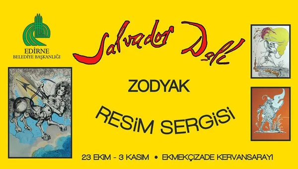 Edirne Belediyesi Kültür ve Sanat Etkinlikleri kapsamında, modern resmin en büyük öncülerinden biri sayılan Salvador Dali, “Zodyak” adlı resim sergisi Ekmekçizade Kervansarayı’nda.Edirne Belediye Başkanı Hamdi Sedefçi, yaptığı yazılı açıklamada, Edirne Belediye Başkanlığı’nın kültür ve sanat etkinlikleri kapsamında, Salvador Dali’nin “Zodyak” isimli resim sergisinin Ekmekçizade Kervansarayı’nda sanatseverlerle buluşacağını bildirdi.