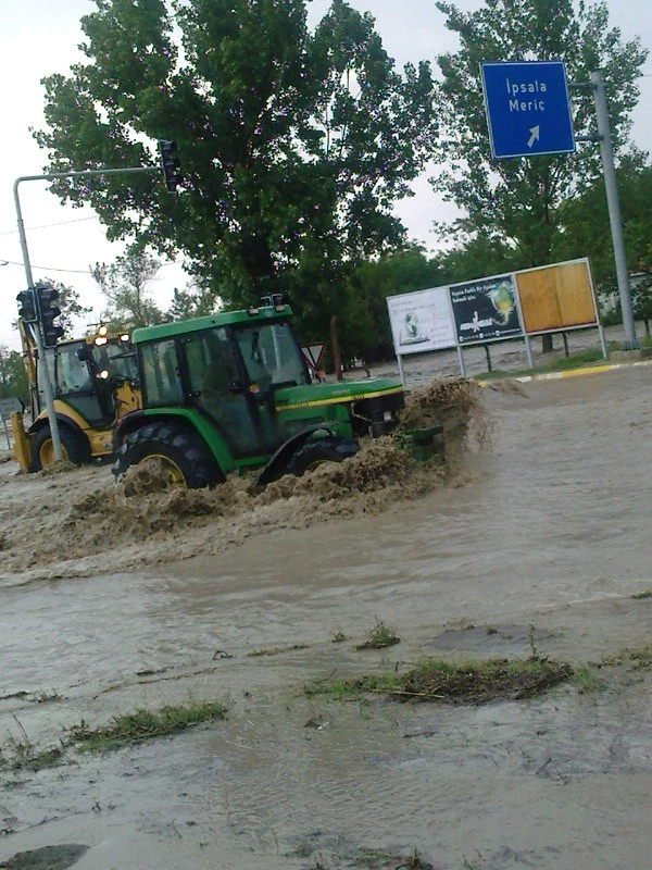İpsala’da saat 14..00 civarında başlayan şiddetli dolu ile karışık yağmur yağışı yarım saat içersinde hayatı felç etti.14.30 dan sonra şiddetini kaybeden yağış Türkiye- Yunanistan yolunu İpsala dört yol mevkide kesti. Şiddetli dolu ve yağmur yağışının ekili alanlarada büyük zarar vermesinden korkuluyor. Yunanistan yolu halen ulaşıma açılamadı.(saat 16:21)