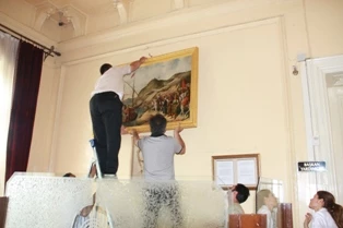 Edirne Belediyesi'nde bulunan tarihi tablolar onarılarak yerlerine yerleştirildi.