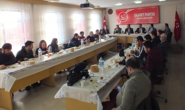 Saadet Partisi Genel Başkan Yardımcısı Mustafa İriş, Edirne il teşkilatında, yılın ilk basın toplantısını yaptı. 2014 yılının değerlendirildiği basın toplantısında konuşan Mustafa İriş, ''Adil temeller üzerine kurulu bir dünya için bütün gücümüzle çalışıyoruz''dedi ve sözlerine şöyle devam etti;
