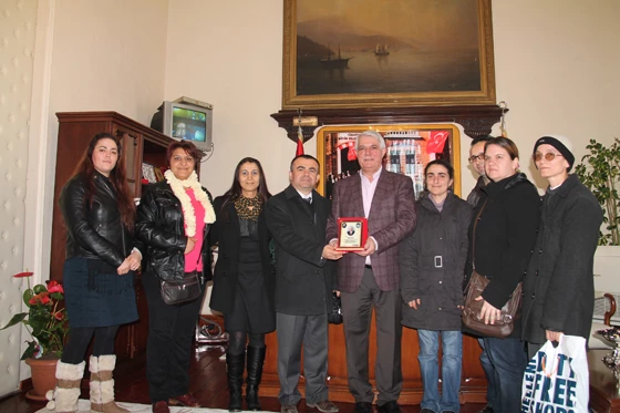 Ziyaret sonunda Kesimoğlu, Başkan Sedefçi’ye teşekkür plaketi takdim etti.