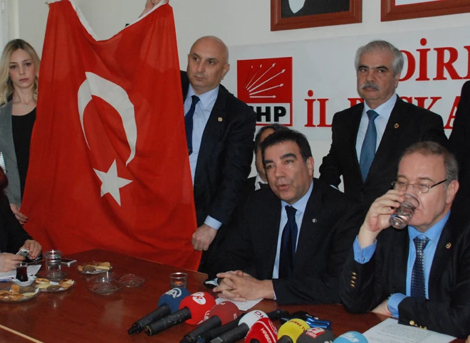 CHP Genel Başkan Yardımcısı Faik Öztrak, 'Abdullah Öcalan ve Recep Tayyip Erdoğan eş başkanlığında yürüyen sürecin geldiği nokta tüm ülkemizin milletimizin içini acıtmıştır. Bunu AKP yönetimi ve AKP hükümeti hazmedebilir ama ben bunu Türk Milleti ve hepimiz tarafından hazmedilmesinin çok zor olduğunu düşünüyorum. Dün genel merkezimize il ve ilçe binalarına bu ülkenin sahipsiz olmadığını, bu ülkenin bayrağının ay yıldızlı al bayrağımız olduğunu göstermek amacıyla bayraklarımızı astık, milletimizin de asacağını tahmin ediyorum.' Dedi.