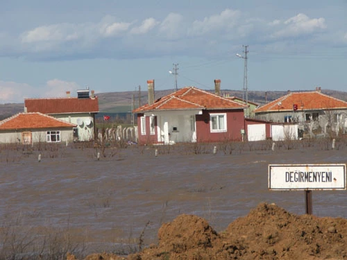 Köyün üç tarafını saran taşkın suları, köyü adeta bir yarımadaya döndürdü.