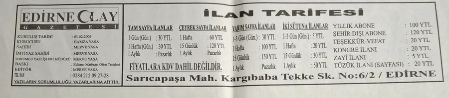 Bu hayalimizi gerçekleştirmek için yapacağımız tek şey GAZETE satmak olacaktır! Edirne’de mümkün olduğu kadar çok Edirnelinin okuyabildiği bir Gazete olabilmek için var gücümüzle çalışarak; Edirne’mizden dünyaya açılan bir Pencere oluşturabilirsek ne mutlu bizlere…