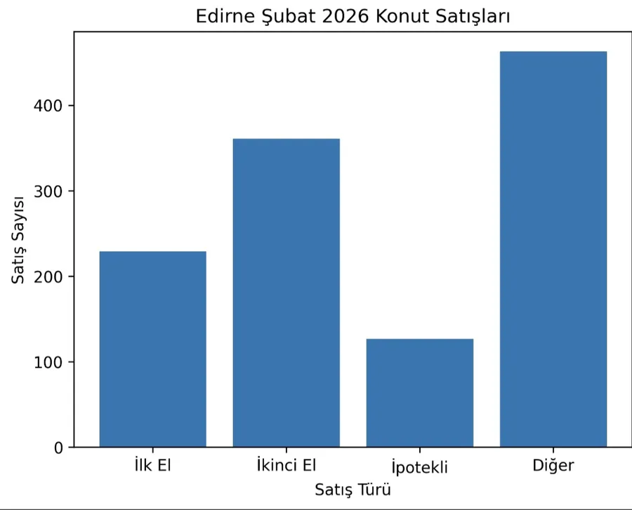 Edirne’de 2026 yılının Şubat ayında toplam 590 konut satışı gerçekleşti. Satışların büyük bölümünü ikinci el konutlar oluştururken, ipotekli satışların sayısı ise sınırlı kaldı.