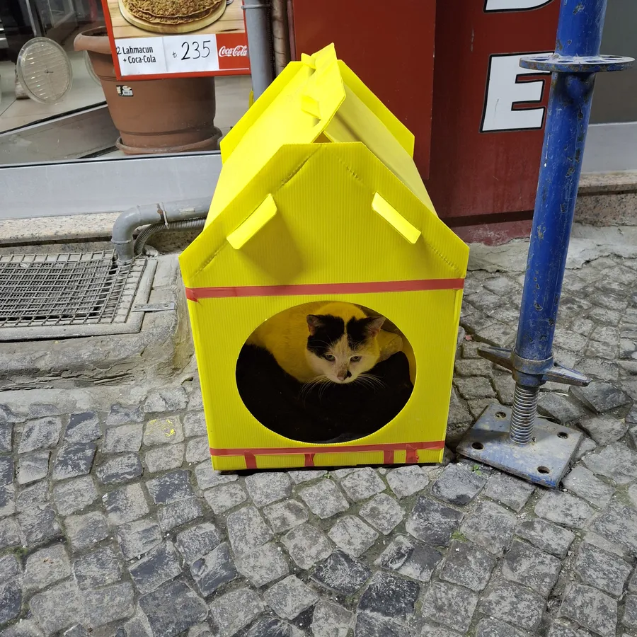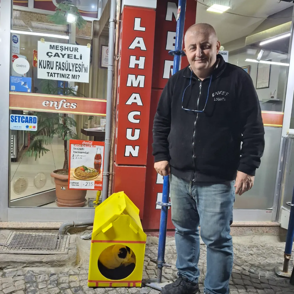 Ancak Şener Sanal’ı farklı kılan yalnızca mutfağı değil. Çilingirler Çarşısı’nda herkesin sevgilisi olan sokak kedileri için dükkânının önüne yerleştirdiği kedi barınak, onun merhamet dolu yüreğinin en somut göstergesi. Soğuk kış günlerinde sıcak bir yuva, yaz sıcağında güvenli bir gölgelik olan bu küçük barınak, sessiz canlara uzanan büyük bir iyilik eli niteliğinde.