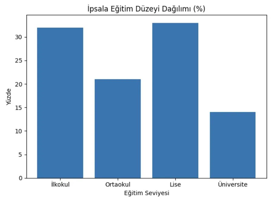 Türkiye İstatistik Kurumu’nun eğitim düzeyi verileri üzerinden yapılan değerlendirmede İpsala’da belirli yaş gruplarında yaklaşık 20 bin kişinin eğitim durumu incelendi. Bu nüfus içinde yaklaşık 2 bin 800 kişinin üniversite mezunu olduğu görülüyor. Bu da ilçede üniversite mezunu oranının yaklaşık yüzde 14 seviyesine ulaştığını ortaya koyarken,Edirne TUİK Bölge Müdürlüğü verileri aynı zamanda ilçede genç nüfusun payının azaldığına işaret eden önemli bir tabloyu da netleştiriyor!