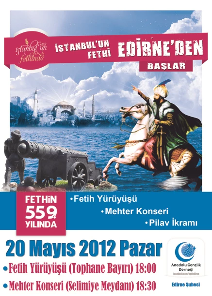 Bu münasebetle, Anadolu Gençlik Derneği Edirne Şubesi olarak, İstanbul’un fethinde Edirne’nin önemini ortaya çıkarmak istiyoruz.