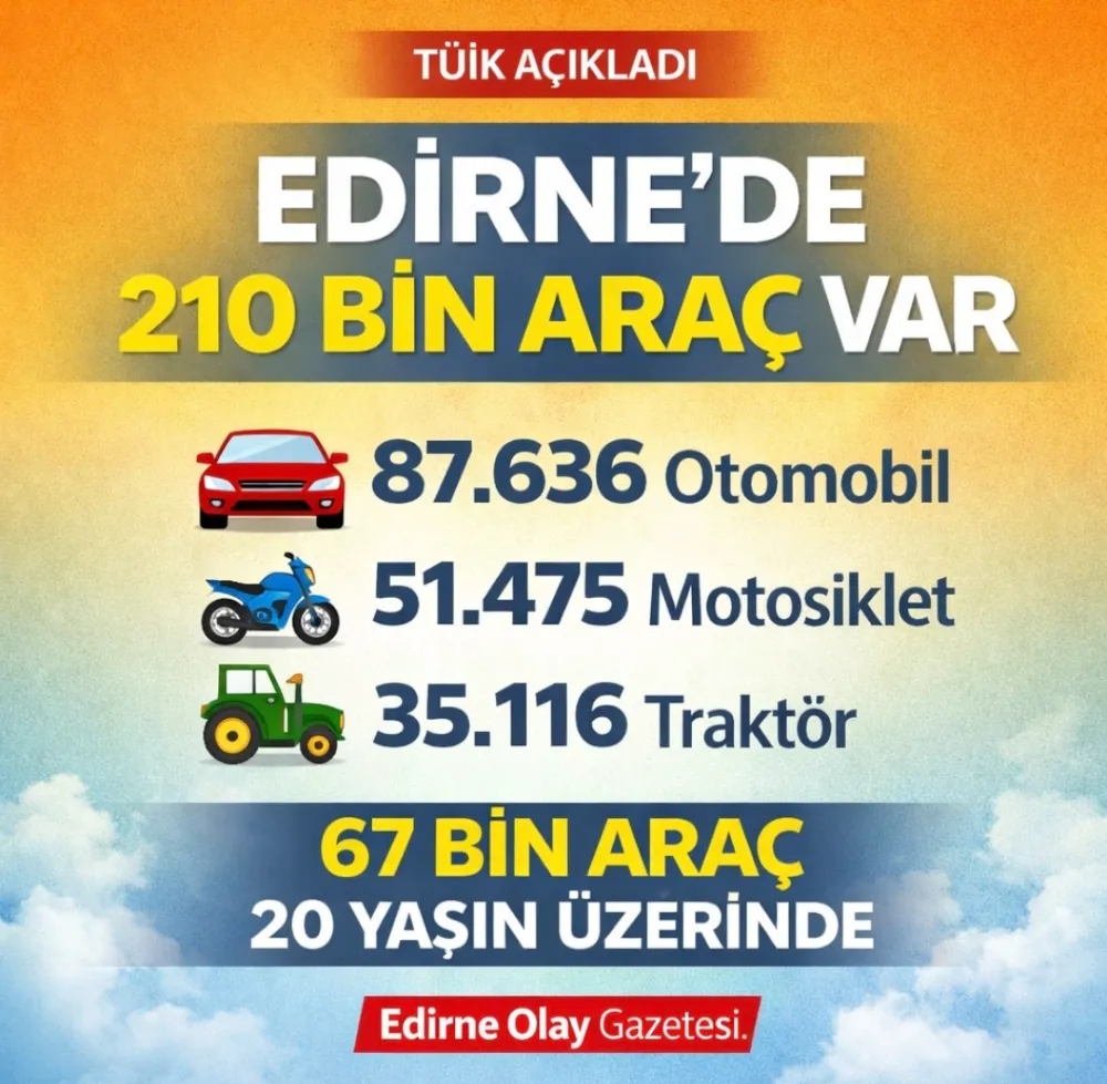 EDİRNE’DE ARAÇ SAYISI 210 BİNİ GEÇTİ