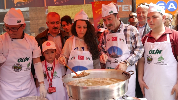Edirne'yi Tanıtma ve Tava Ciğeri Koruma Derneği Başkanı Bahri Dinar ile protokol üyelerinin Belediye Başkanı Gürkan'a tava ciğer ustalarının önlüğünü giydirmeleriyle başlayan Festivalde, vatandaşlar plastik tabaklarda kuru biber eşliğinde bedava dağıtılan Edirne'nin tarihi tava ciğerini almak için ezilme tehlikesi geçirdiler.