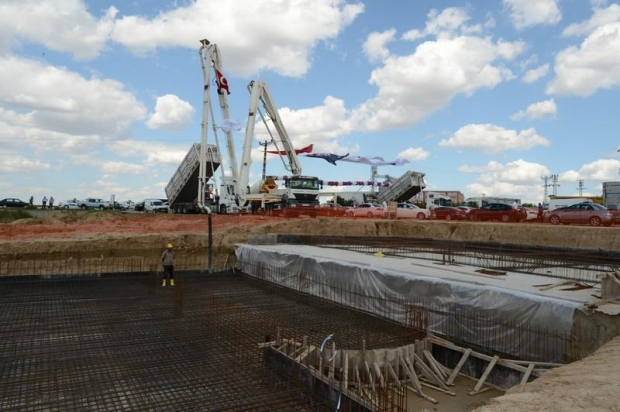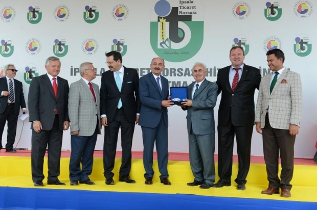 Konuşmaların ardından, Müezzinoğlu, Hisarcıklıoğlu, Edirne Valisi Dursun Ali Şahin, İpsala Ticaret Borsası Başkanı İbrahim Girgin ve diğer yetkililer binanın temelini butona basarak attı.