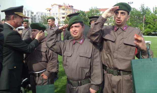 Engelliler askerlik görevini tamamladı.Törende asker yakınları gözyaşlarına hakim olamadı.Edirne'de zihinsel ve fiziksel engelli 36 kişi 1 günlük temsili askerlik görevini tamamlamanın gururunu yaşadı. Asker yakınları askeri kıyafetler içinde gördükleri çocukları karşısında gözyaşlarını tutamadı.