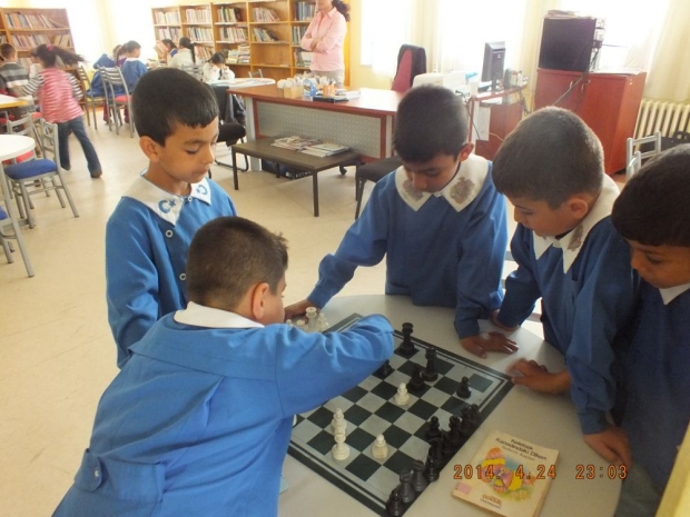 Masal etkinliği sonrasında, öğrenciler, İl Halk Kütüphanesi'nin çocuk bölümünde bir süre kitap okudu, ardından da sinema salonunda film izlediler.