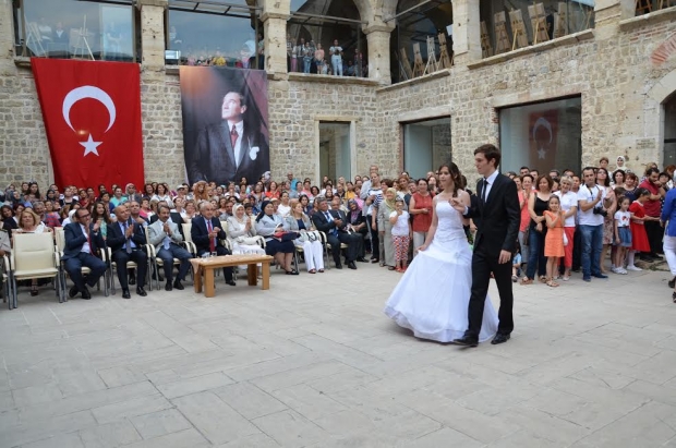 Konuşmaların ardından Halk Eğitim Merkezi kursiyerlerinin yıl boyunca hazırladığı kıyafetlerin defile gösterisi yapıldı. Defilenin ardından Serginin açılış kurdelesini Edirne Valisi Dursun Ali Şahin ve beraberindekiler birlikte kestiler.