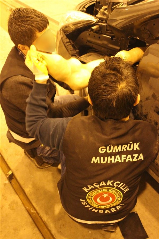 Gümrük ve Ticaret Bakanlığı Trakya Gümrük ve Ticaret Bölge Müdürlüğüne bağlı İpsala Gümrük Kapısı'nda bir otomobilde Risk aramaları kapsamında x-ray taramasına yönlendirilen otomobilin yoğunluk tespit edilen motor bölümü, narkotik detektör köpekleri Tina ve Jack'in de katılımıyla arandı. Aramada, motor bölümüne gizlenmiş piyasa değeri 500 Bin TL olan 8 kilo 285 gram eroin bulundu.