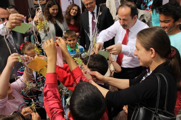 Gürkan, "23 Nisan'da tüm günümüzü çocuklarımızla geçirmenin mutluluğu içindeyim. Çocuklarımızla dilek ağacına asmak üzere dilekler yazdık. Tüm çocuklarımız için ortak bir dileğimiz vardı ki; en önemlisi kısa zamanda sağlıklarına kavuşmaları ve sevgi, barış ve huzur dolu bir dünyada yaşamaları." dedi.