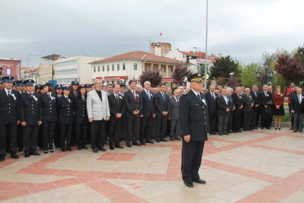 Daha sonra kutlamalar Atatürk Anıtı'nda düzenlenen program ile sürdü. Burada İlimizin yeni Emniyet Müdürü Dr. Rahmi Baştuğ tarafından anıta çelenk sunumuyla başlayan tören, Belediye bandosu eşliğinde saygı duruşunda bulunulup, İstiklal Marşı söylenmesi ve Günün anlam ve önemini belirten konuşmayı bizzat İl Emniyet Müdürü Dr. Baştuğ yapmasıyla devam etti.
