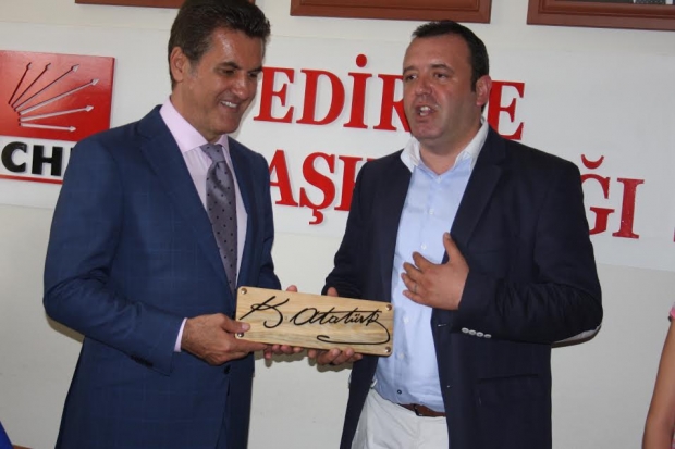 İl Başkanı Oktay Bozkurt ziyaret anısına Gençlik Kollarının el emeği yaptığı Atatürk İmzasını taşıyan masa seti hediye etti. Bozkurt yaptığı konuşmada " Edirne'ye yaptığınız gezide İl Başkanlığımıza da yaptığınız sürpriz ziyaret bizi mutlu etti. Sosyal Belediyecilikte çağ atlamanın ne olduğunu gösterdiniz sizi tebrik ederim " dedi