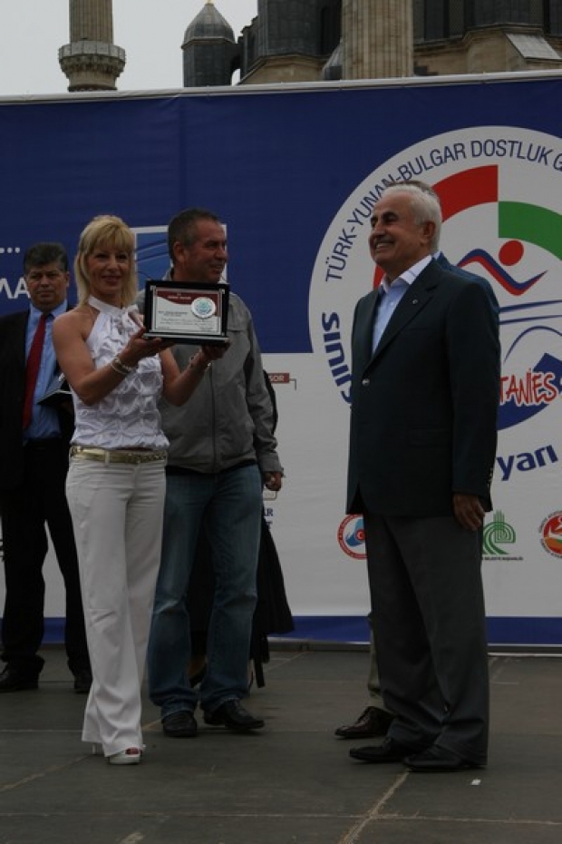 Türk, Yunan, Bulgar Dostluk Grubu Derneği'nce düzenlenen'Sınırsız Dostluk Yarı Maratonu'nda Edirne Valisi Dursun Ali Şahin ödül töreninde yaptığı konuşmada; Selimiye'nin gölgesinde dostlukların tazelendiğini ifade ederek, Edirne'nin çok anlamlı bir gün yaşadığını söyledi. Vali Şahin konuşmasında, "Anlamlı bir günde Selimiye'nin gölgesinde toplanmış bulunuyoruz. Selimiye demek ki bizleri bir araya getiren, barışı getiren bir sembol. Artık sınırsız dostlukların başladığı günleri yaşıyoruz. Tarih kokan, şehirlerin sultanı Edirne'ye hepiniz hoş geldiniz. Edirne öyle bir şehir ki 100 yıl kadar Balkanlar'a ve Anadolu'ya başkentlik etmiş bir şehir. Selimiye sayesinde Balkanlar'da ve Anadolu'da huzur ve sükûn bulmuş bir kentte bulunuyorsunuz. Bu bölge kültürlerimizi tamamlayan bir bölge. Türk, Bulgar ve Yunan halklarının dostluklarının sporla tazelendiği bir günde bulunuyoruz. Bu yarışmalar kardeşliğimizi geliştirecek. Siz sporcular, ülkenizin birer barış elçilerisiniz. Önümüzdeki günlerde daha çok beraber olacağız." dedi.
