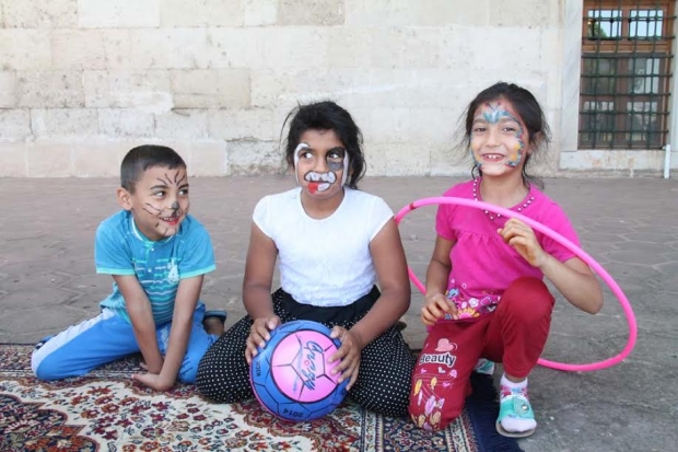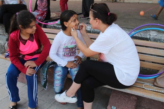 'Hayatın dışarıda oyunlarla öğrenilir' diyen Selvi, çocuklara yapılan yüz boyamaların ardından, onlarla unutulmaya yüz tutmuş sokak oyunları oynadı.
