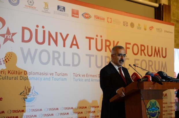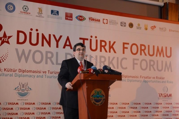 Dünya Türk Forumunun açılışında bir konuşma yapan Edirne Valisi Hasan Duruer, böyle büyük ve anlamlı bir organizasyona ev sahipliği yapmanın mutluluğunu yaşıyoruz. Edirne Türk tarihinin en önemli şehirlerinden biridir. Birçok medeniyete ev sahipliği yapan Edirne, Türk kültürünü de en iyi şekilde yansıtan şehirlerden bir tanesidir. Türk tarihinin en önemli eserlerinden birisi olan Selimiye Camisi Edirne'dedir. Selimiye bir pırlanta gibidir. Edirne ve Türk tarihine yakışan bir camidir. Selimiye'nin yanında şehrimiz çok sayıda tarihi esere de ev sahipliği yapmaktadır. Rivayete göre Fransa'dan sonra en fazla tarihi eserin burada olduğu söyleniyor. 30'dan fazla camisi, bunlardan 7 tanesi selatin camisidir, 14 tane köprüsü, 120 tane çeşmesi, 350-400 civarında sivil mimari örnekleri ve içinde bulunduğunuz muhteşem kervansaray ile gerçekten çok önemli bir kentte bulunuyorsunuz. Edirne aynı zamanda da Balkanların merkez şehridir. Balkanlarda 5 milyona yakın soydaşımız sürgüne, göçe ve katliama maruz kaldı ancak Türk milletinin yapılan iyilikleri ve kötülükleri çabuk unutma özelliği vardır. 250 milyonluk Türk dünyasındaki üretim bir Almanya'nın gayrisafi hasılası veya Microsoft'un cirosu kadar yoktur. Ne yazık ki yeterli üretimi yapamadığımız görüyoruz. Bugün dünyada 100 tane bilim adamı sayacak olsak içlerinden bir tanesinin Türk olmaması maalesef bize acı veriyor. Sanatçılarımızdan kaç tanesinin dünya çapında bir eseri var, kaç tane bilim adamı yetiştirebiliyoruz. Bunlara baktığımızda insana üzüntü veriyor. Bugün Türkiye olarak üretmiyoruz, alıyoruz. teknoloji üretmiyoruz, teknoloji satın alıyoruz. Bunları çok iyi düşünmemiz lazım. Geleceğe çok iyi hazırlık yapmamız gerekir diye düşünüyorum' dedi.