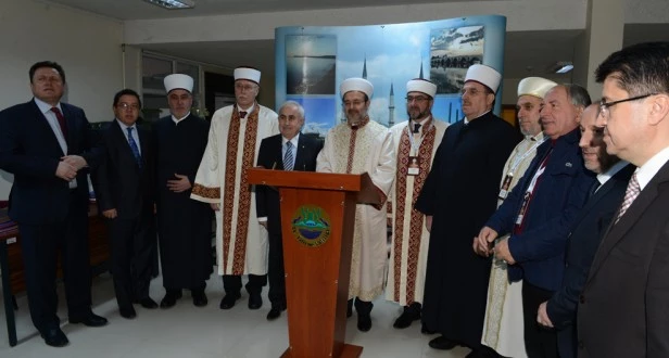 3 gün sürecek olan 30. İl Müftüleri istişare Toplantısı için Edirne’ye gelen Diyanet İşleri Başkanı Prof.Dr. Mehmet Görmez Balkanlardan gelen müftüler ile birlikte Edirne Valisi Dursun Ali Şahin’i makamında ziyaret etti. Diyanet İşleri Başkanı Görmez’de Edirne’de olmaktan büyük mutluluk duyduğunu belirterek, Balkan ülkelerinden gelen müftüleri de Edirne’de ağırlamaktan onur duyduğunu söyledi.