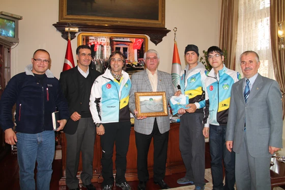 Edirne Belediye Başkanı Hamdi Sedefçi’yi makamında ziyaret eden Edirne Bisiklet Kulübü Başkanı Sadi Çalışkan ve beraberindeki sporcular, Başkan Sedefçiye kulüplerine yaptığı desteklerden dolayı teşekkür ettiler. EBİS Başkanı Sadi Çalışkan; “Belediye Başkanı Hamdi Sedefçinin katkıları ve çalışmaları Edirne’de bir milattır.” Dedi.