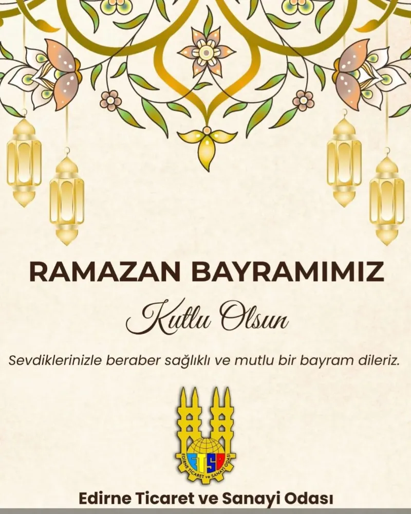 Edirne Ticaret ve Sanayi Odası Ramazan Bayramımız Kutlu Olsun” “Sevdiklerinizle beraber sağlıklı ve mutlu bir bayram dileriz.”