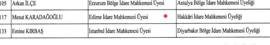 ●Mesut Karaddğoğlu, Edirne İdare Mahkemesi üyeliğinden Hakkâri İdare Mahkemesi üyeliğine,