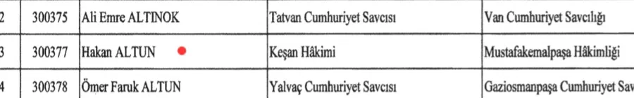 ●Hakan Altun, Keşan hâkimliğinden Mustafakemalpaşa hâkimliğine görevlendirildi.