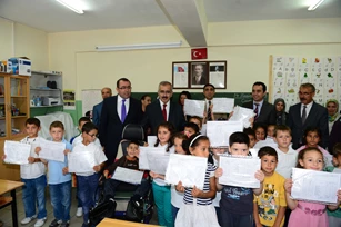 Vali Hasan Duruer ve törene katılanlar, öğrencilerin hazırladığı halk oyunları gösterisini izledikten sonra okulun kreşini gezdiler. Burada öğrencilerin karnelerini dağıtan Duruer; kreşteki öğrencilerin söyledikleri şarkıları dinledi.