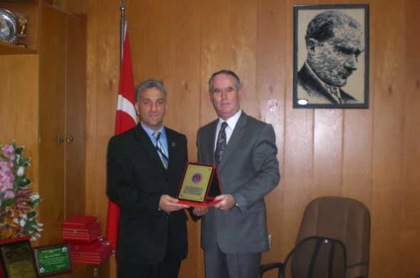 Edirne Gençlik Spor İl Müdürü Emin Küçük, Edirne İl Emniyet Müdürü Mehmet Yazıcı'nın korumalarından Emniyet personeli Murat Polat'a sualtı federasyonu adına başarı plaketi verdi.