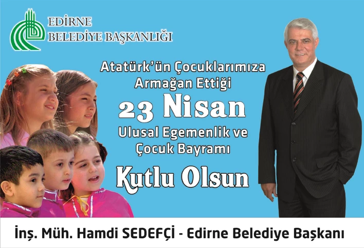 Başkan Hamdi Sedefçi mesajında, “Tarihimizdeki dönüm noktaları, bağımsız ve özgür yaşamak, laik, demokratik Cumhuriyet'e sahip olmak, uygar dünyayla bütünleşmek yolunda Ulusça gösterilen çabaların önemini anımsatırken, Atatürk'ün eşsizliğini ve yüceliğini tüm yönleriyle bir kez daha ortaya koymaktadır.” diyerek, bu yıl 23 Nisan’ın Edirne’de daha da coşkulu bir şekilde kutlanacağını kaydetti ve “Edirne Belediye Başkanlığı olarak bu yıl ilkini düzenleyeceğimiz I.Uluslararası 23 Nisan Çocuk Halk Dansları Festivalimizle, Mustafa Kemal Atatürk’ün dünya çocuklarına armağan ettiği büyük günü daha coşkulu yaşayacağız.” diye konuştu.
