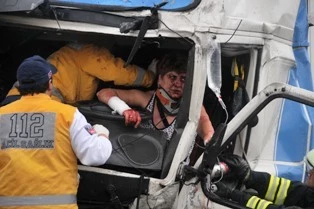 Tır sürücüsü Marianna ve yanındaki Holzmann Uwe yaralandı.