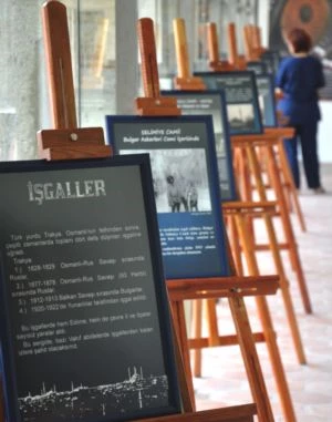 Edirne Osmanlı hâkimiyetinde bulunduğu dönemde 4 kez işgale uğradı. Bu İşgaller sırasında Osmanlı döneminde yapılan birçok abide eser düşman askerleri tarafından kullanıldı veya tahrip edildi. Vakıflar Bölge Müdürü Hayati Binler Bu İşgal dönemlerinde Osmanlı eserlerinin gördüğü tahribatları gösteren fotoğraflardan bir sergi oluşturuldu. Edirne Vakıflar Bölge Müdürlüğü sorumluluk sahasında bulunan tarihi eserlerin işgal dönemindeki durumu sergiyi gezen ziyaretçileri hüzünlendirdi. Sergide en büyük ilgiyi işgalde; Osmanlı döneminin en önemli eserlerinden biri olan Mimar Sinan'ın ustalık eserim dediği 'Selimiye Cami'nin iç avlusunda toplanan Bulgar askerlerinin fotoğrafları çekti.