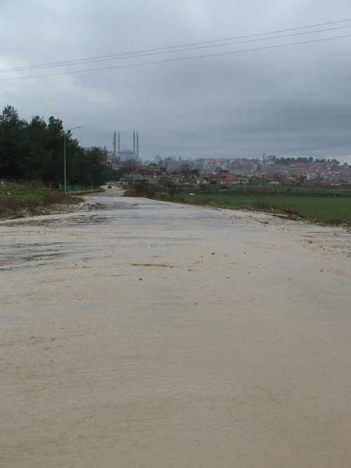 Edirne merkez TOKİ yerleşim alanına giden yol ise, göle dönmüş durumda.